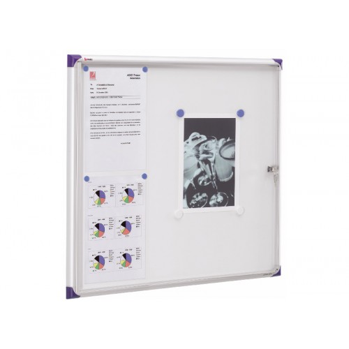 Slimline Displayskåp.Endast 2 cm Djupmått.Vit magnetyta för skrift eller anslag. Lätt åtkomlighet och bra säkerhet via låsbar dörr.