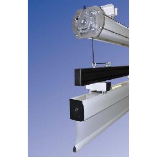 Vinschsystem för hög takhöjd. El-hiss som möjliggör steglös höjning/sänkning av duken hela 7 meter.