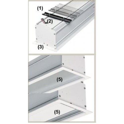 Sesam 2  motordriven Inbyggnadsduk i kassett  för infällnad i innertak.Projektorduken finns i många format och vävtyper.