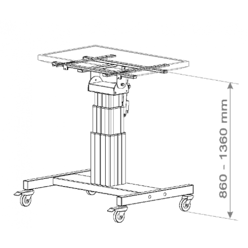 för bästa visnings/arbetsläge. Justerbar höjd med slaglängd 500 mm från 860 - 1360 mm.Tilt steglöst  max 90 grader /Bordsläge/ 4 st Hjul för mobilitet varav2 st är låsbara.