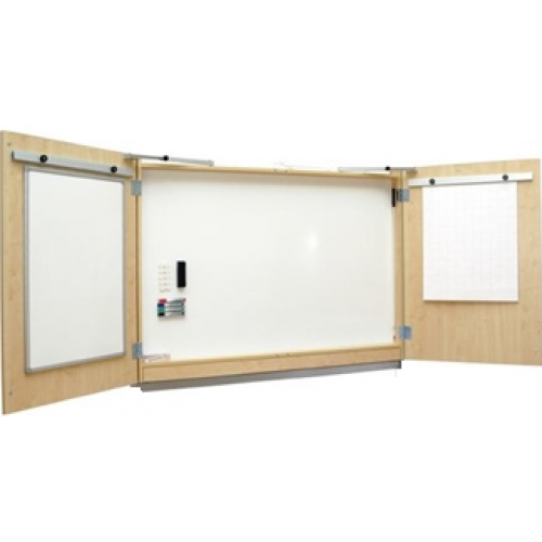 2-dörrars konferensskåp Miljö med vit magnetbärande glasemaljerad skrivyta i högsta kvalitet. Snedställbar inbyggd filmduk,pekpinne