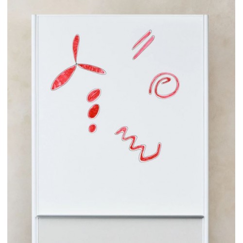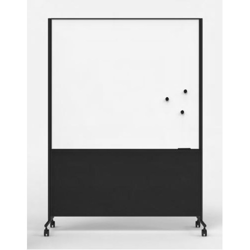 One Whiteboard Screen Mobil skrivtavla.Dubbelsidig vit glasemaljerad ,magnetbärande skrivtavla med ljudblockerande textilklädd nederdel.    Mobilt verktyg för alla professionella miljöer.Rymlig pennhylla med plats för pennor och tillbehör.Hjulfot,varav 2 st hjul är låsbara, rundad ram och textil i  svart eller vit kulör. Flexibla krokar för upphängning av blädderblock medföljer.
